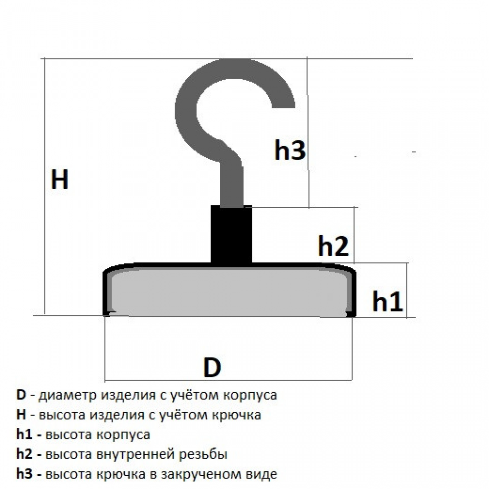 Представляємо Вам неодимовий магніт вклеєний в сталевий корпус. Корпус має внутрішню різьбу із зворотного боку від магніту. У комплекті йде гак. Вклеєний неодимовий магніт має діаметр 36 мм, але за рахунок корпусу у нього працює одна сторона. Сила зчеплення з металом при дотриманні умов (товщина від 2 см, немає фарби іржі) становить близько 41 кг. Цей магнітний тримач широко використовується в побуті, як пристосування для підвішування різних виробів.